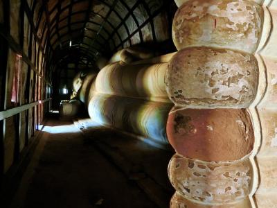 夕陽で有名な、シュエサンドーパヤーのそばにあります。何があるのだろうと思って入ってみたら、狭い中に、18mと大きいけれど地味目の仏様が、建物いっぱいになって寝てらっしゃいました。寺院自体も地味なので、うっかり見逃しそうになりますが、せっかくですから。