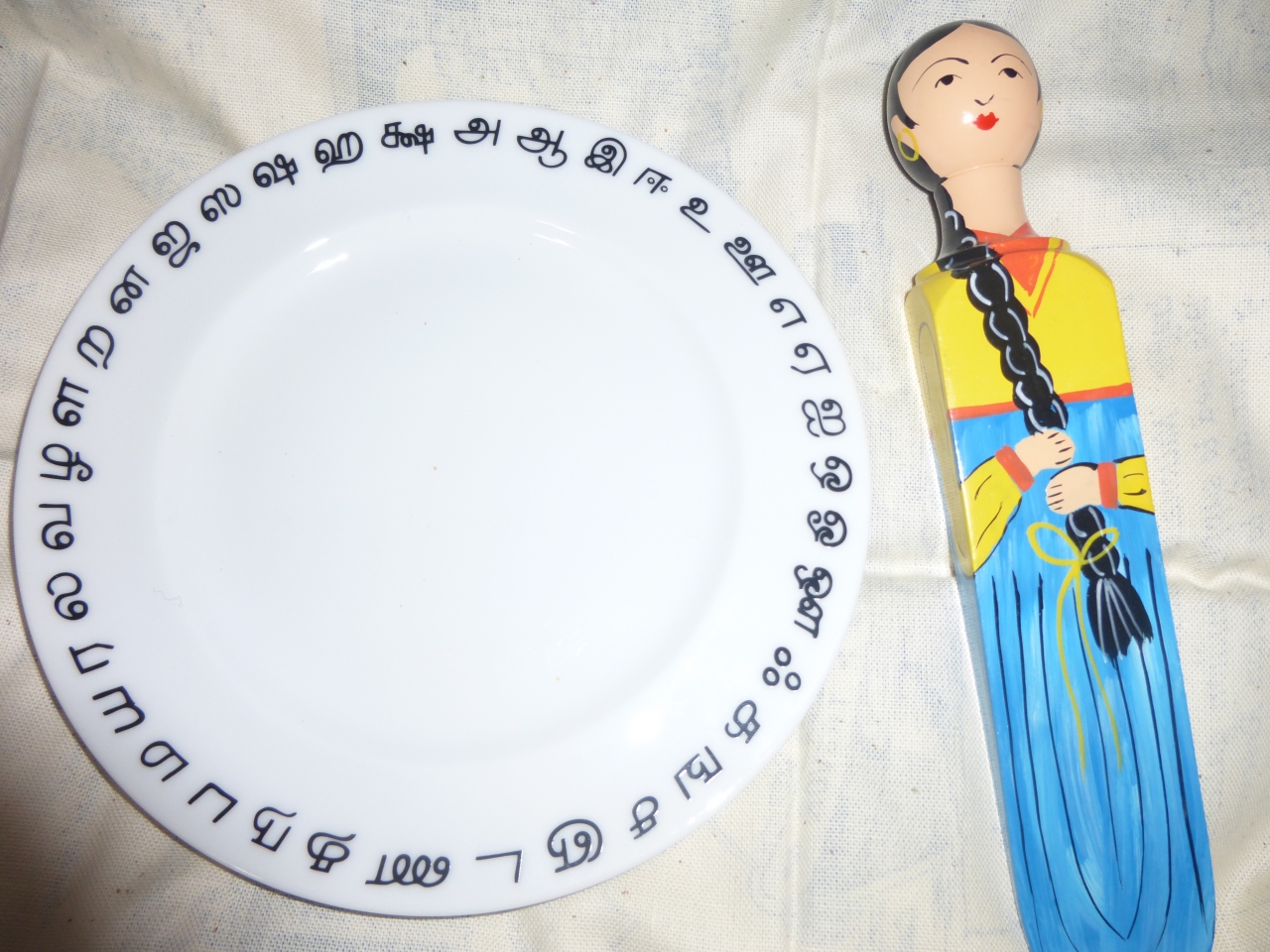 ちょっと洒落た雑貨が売られています。シンハラ語の文字が書かれたお皿を買った…つもりだったのですが、よくよく見たらタミル語でした。