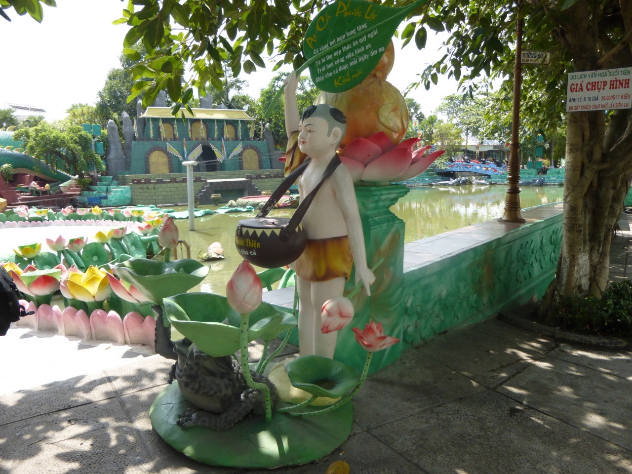 全体に、怪しい感じの仏教テーマパーク(?)です。B級好きの方は、楽しめると思います。入場料は、90,000ドン。どんどん値上がりしているみたいですね。アトラクションは別料金なので、傍にあるチケットスタンドで買ってからアトラクションに行きましょう。日本的クオリティを期待するとがっかりするかもしれませんので、温かい目で見てあげてください(笑)。平日の午前中は、ガラガラで、アトラクション動かしてもらえるのか不安でしたが、大丈夫でした。ベンタイン市場から19番のバスで約1時間。バスも特に混んでいなかったので、座ってゆっくり行きましたよ。
