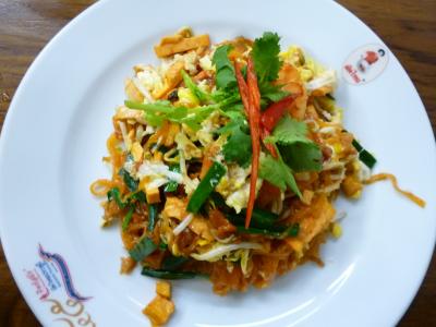 内装も、タイらしい絵が貼ってあったりして、料理を待つ間に楽しめます。メニューは、パッタイだけだったと思います(卵包みあり、なし、海老のせ・・・など種類はありましたが)。