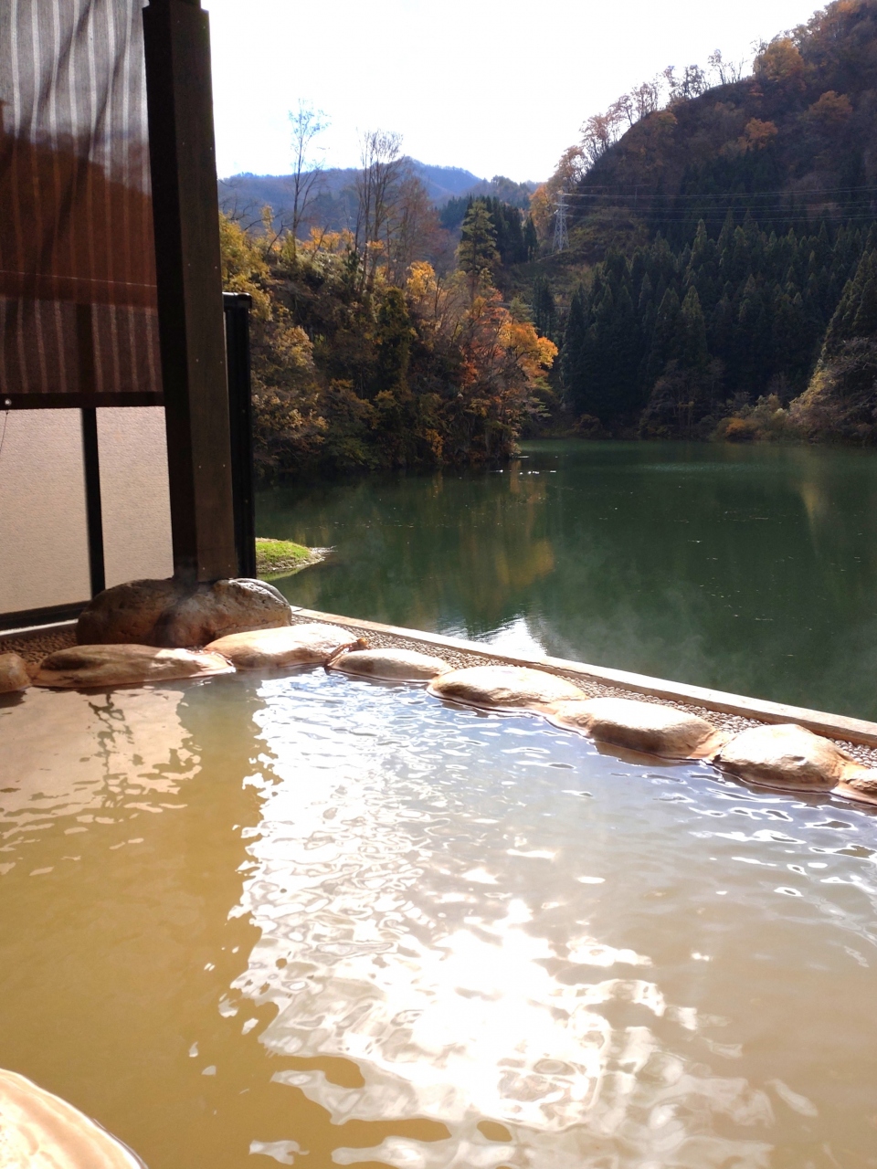 温泉は、只見川を眺めながらの露天風呂が最高!