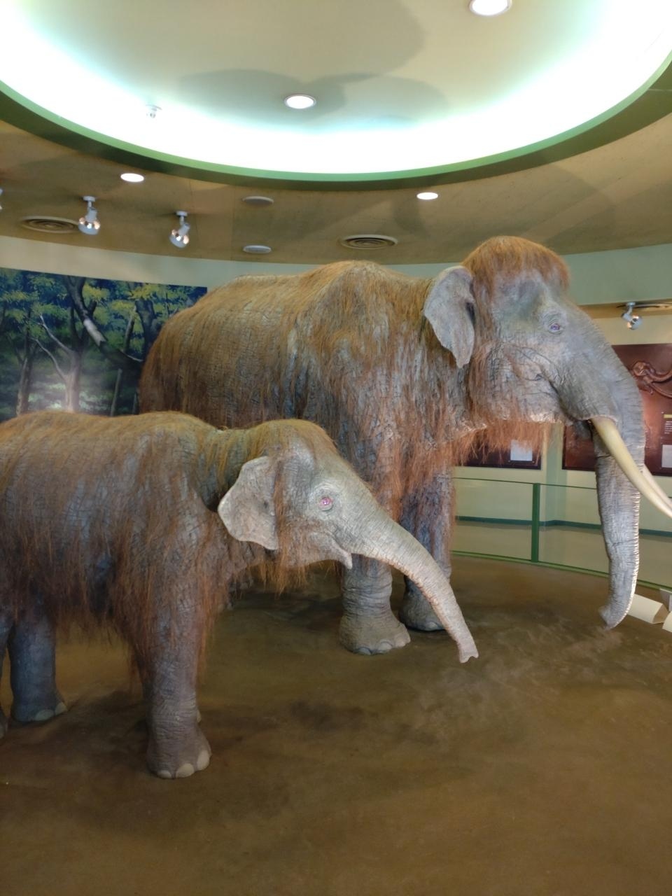 入口には、再現されたナウマンゾウの親子も居て、ドキッとさせられました。
