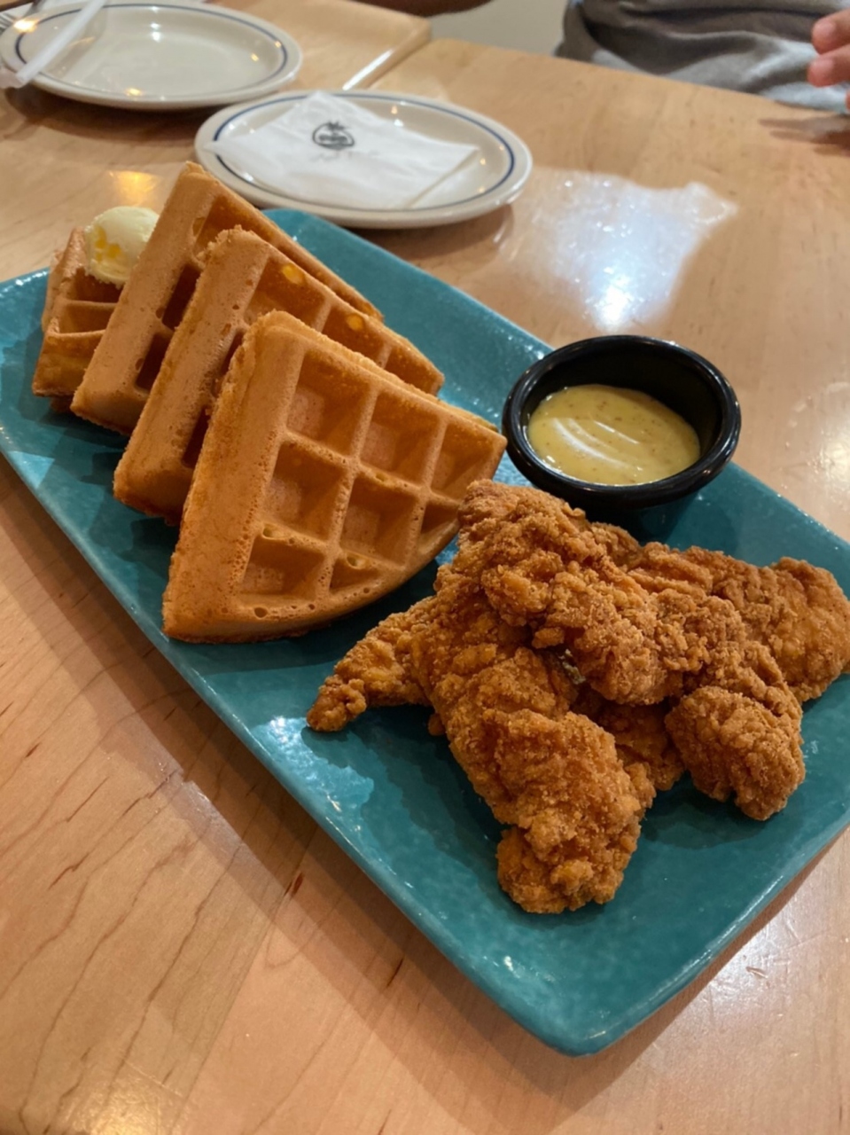 いつも頼むのはフライドチキンと、ワッフルがワンプレートになっている、チキン&ワッフル★カリカリのフライドチキンとフワフワのワッフルの組み合わせが癖になります!バッファローウィングもおすすめです!