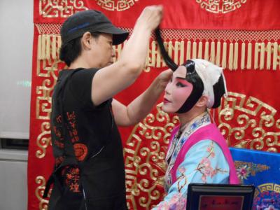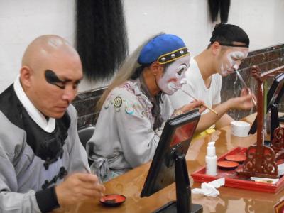 開演前にはバックステージツアーがあり、出演者のメイク風景を見ることができたり、京劇風の衣装を着て写真撮影できたりします。