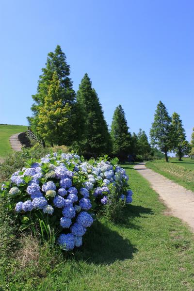 庭園にはバラがちらほら咲いて、珍しい色の鉢植え紫陽花もありました。