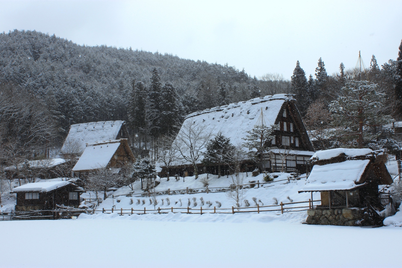 飛騨の里に訪れた日は深々と雪が降っていて、雪かきをされてましたが、一部立入禁止になっていました。