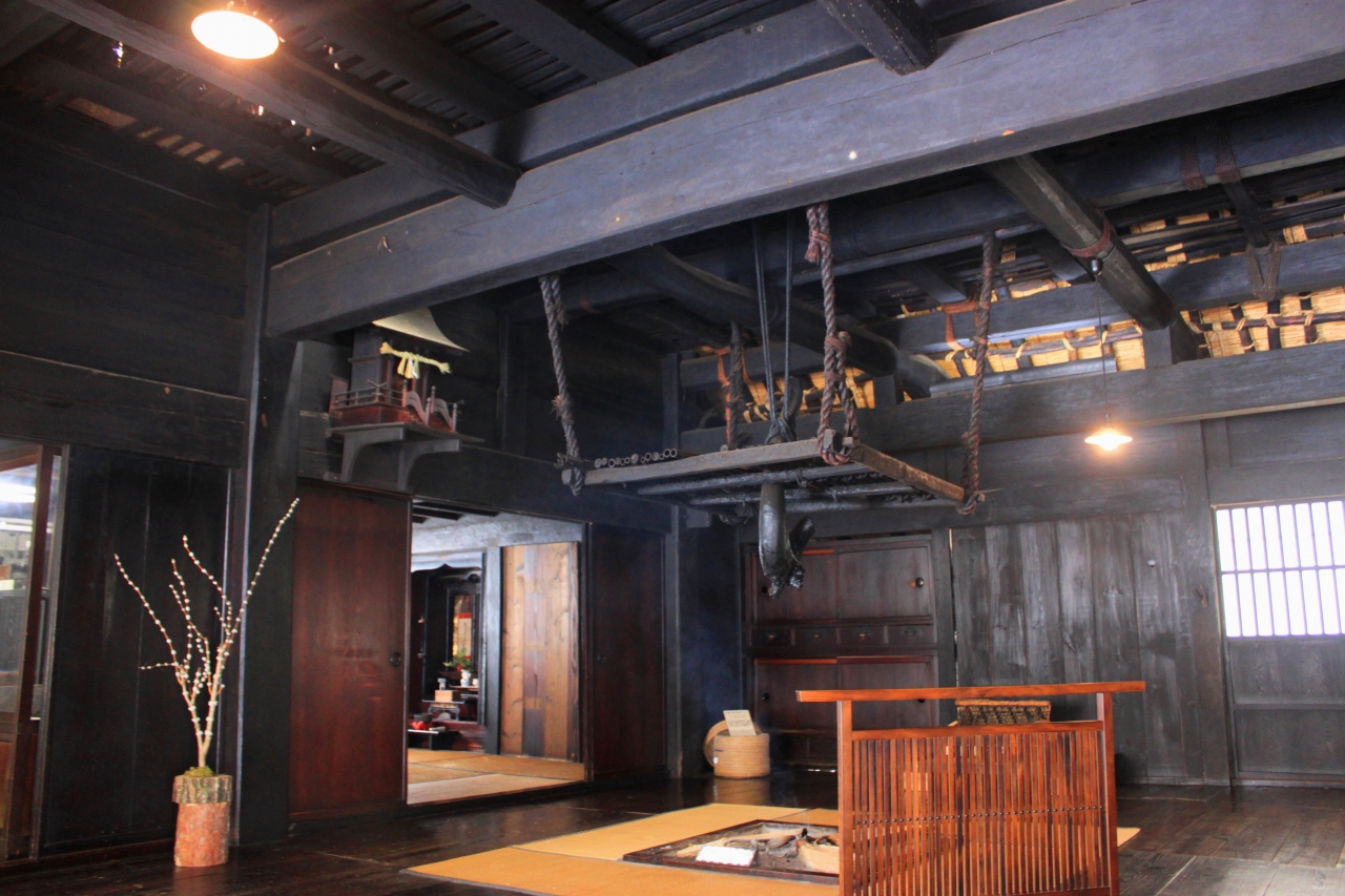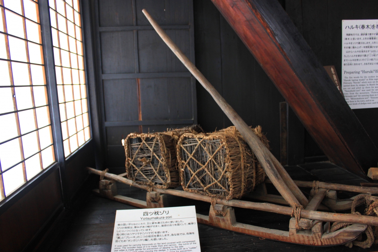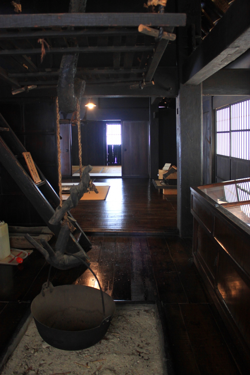 飛騨の里に移築された古民家内には農機具や生活用具が展示してあり興味深いです。