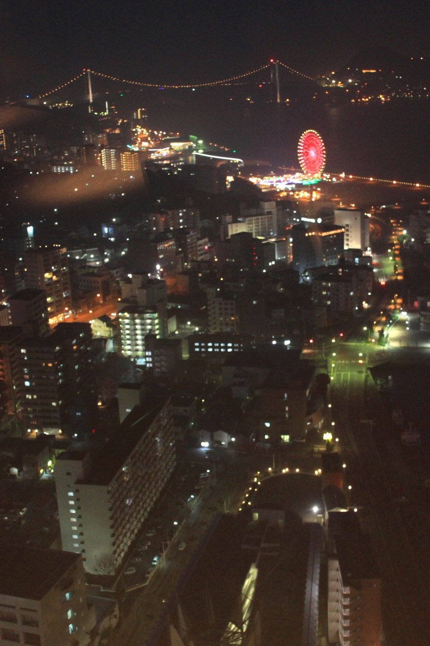他にタワー的な建物は見当たりませんが、下関の海峡ゆめタワーが綺麗にライトアップされていたので同様のイメージかと...