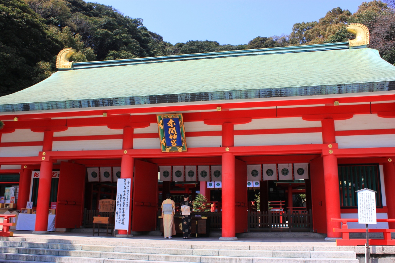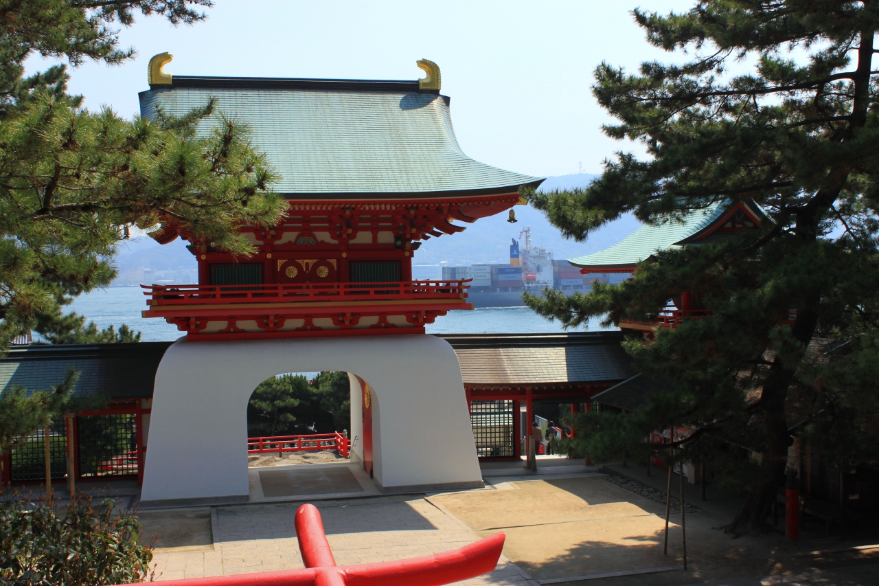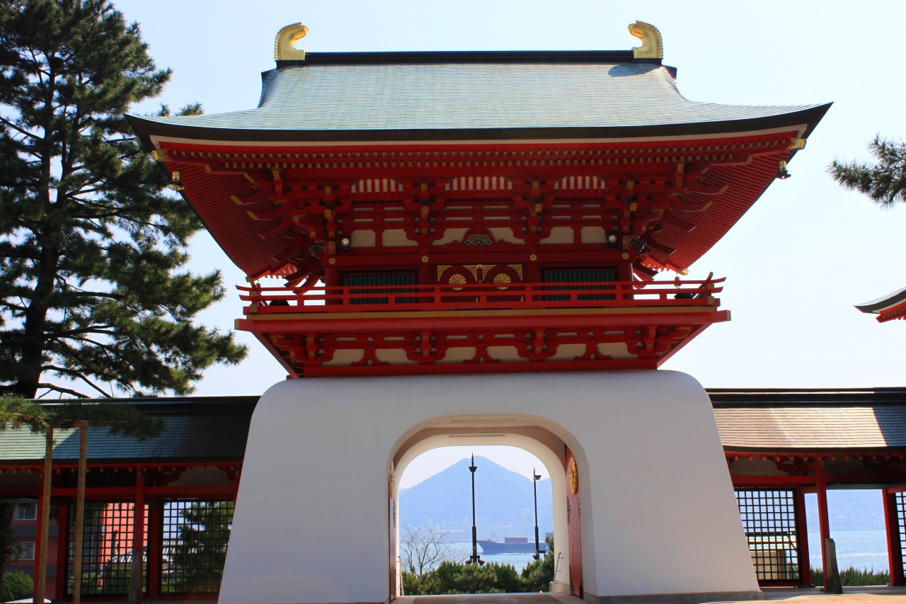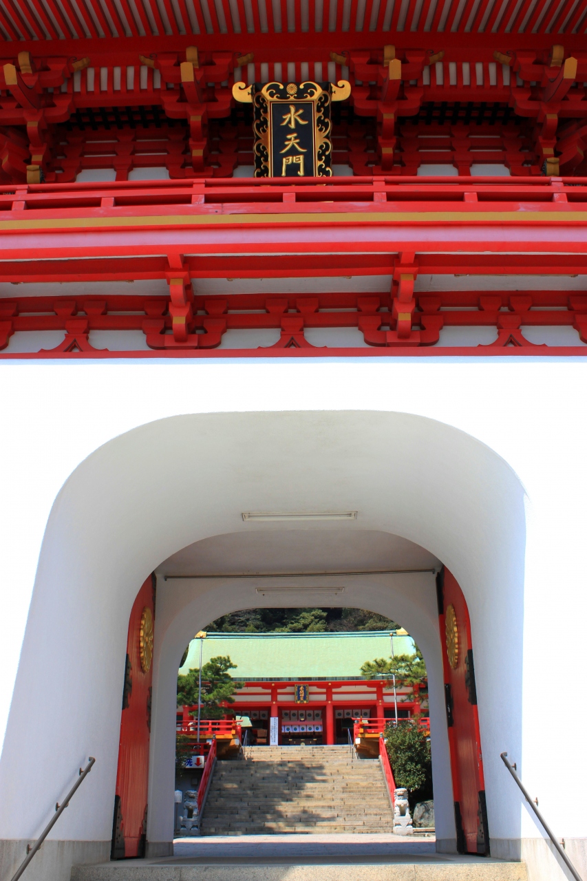 龍宮造りの水天門の向こうにある海峡を行き交う船をぼ~っと見てるのもいいかも♪