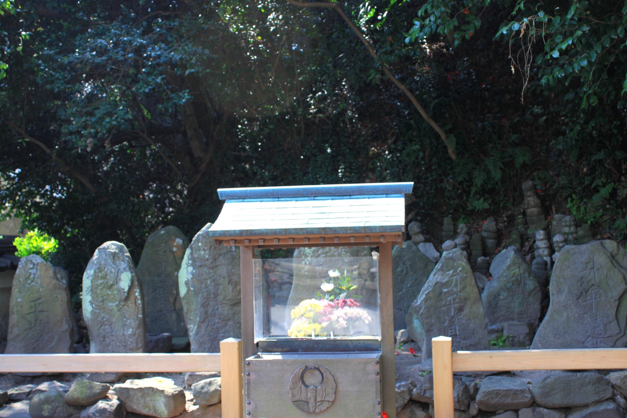 この七盛塚は前列右から有盛(ありもり)、清経(きよつね)、資盛(すけもり)、教経(のりつね)、経盛(つねもり)、知盛(とももり)、教盛(のりもり)。後列は徳門、忠光、景継、景俊、盛継、忠房、二位となっており、盛りの付くのは六基しかないが、俗に七盛塚と言われ墓碑ではなく平家一門の供養塔と考えられている。