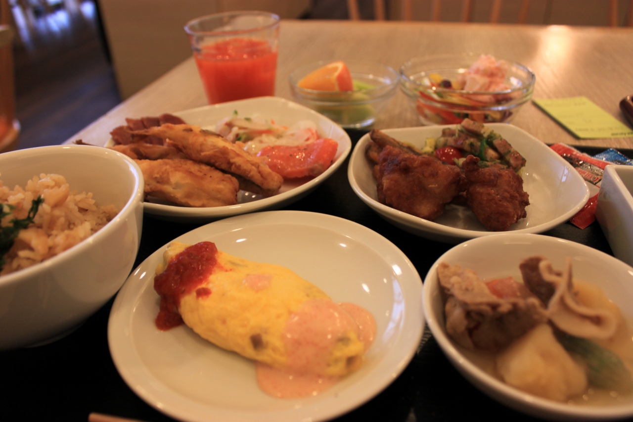 前日のホテルは朝食バイキング別で¥1100でしたがこちらの方が断然よいです。