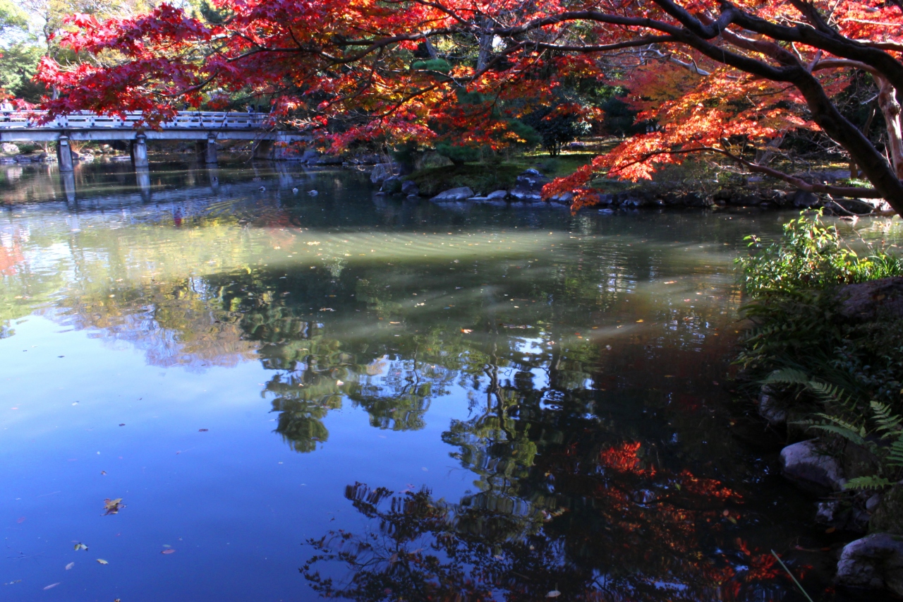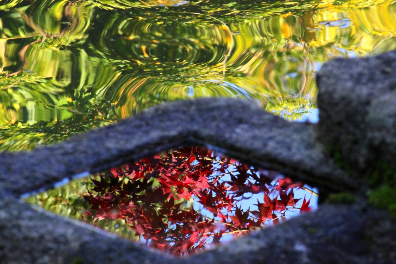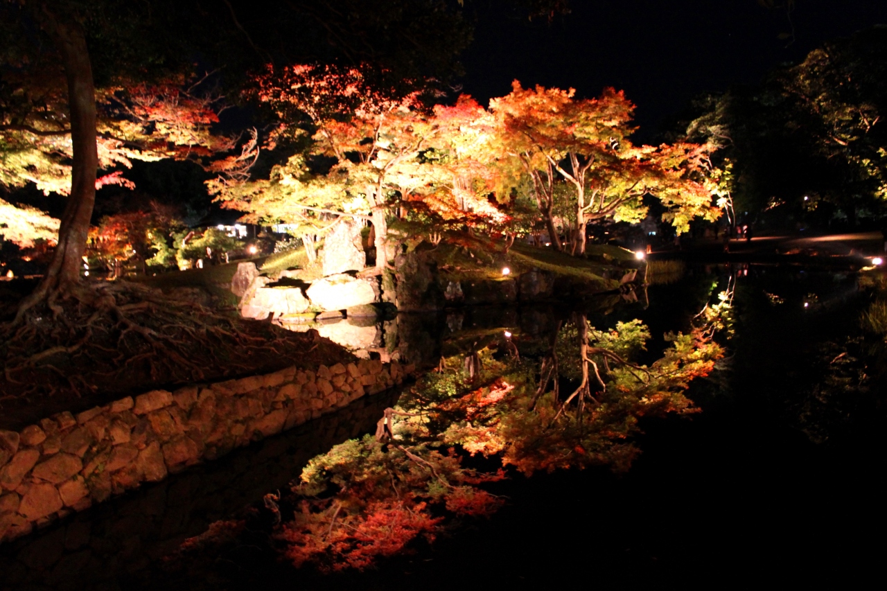 - 庭園散歩ならそこそこ、紅葉ライトアップの水鏡は必見!