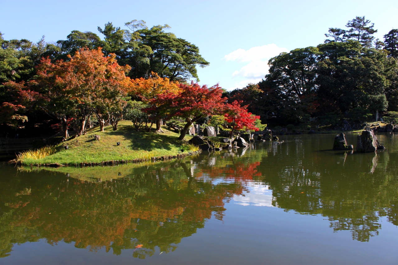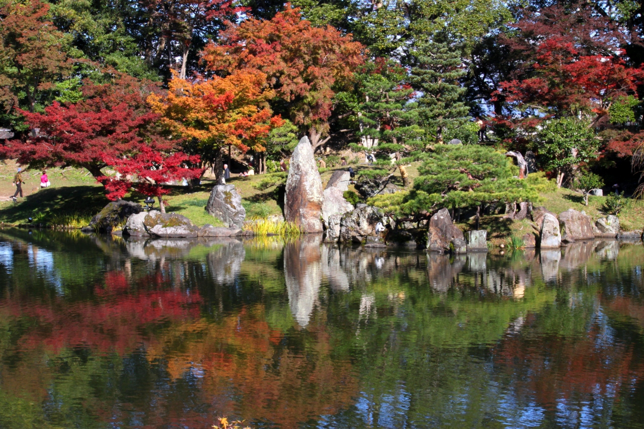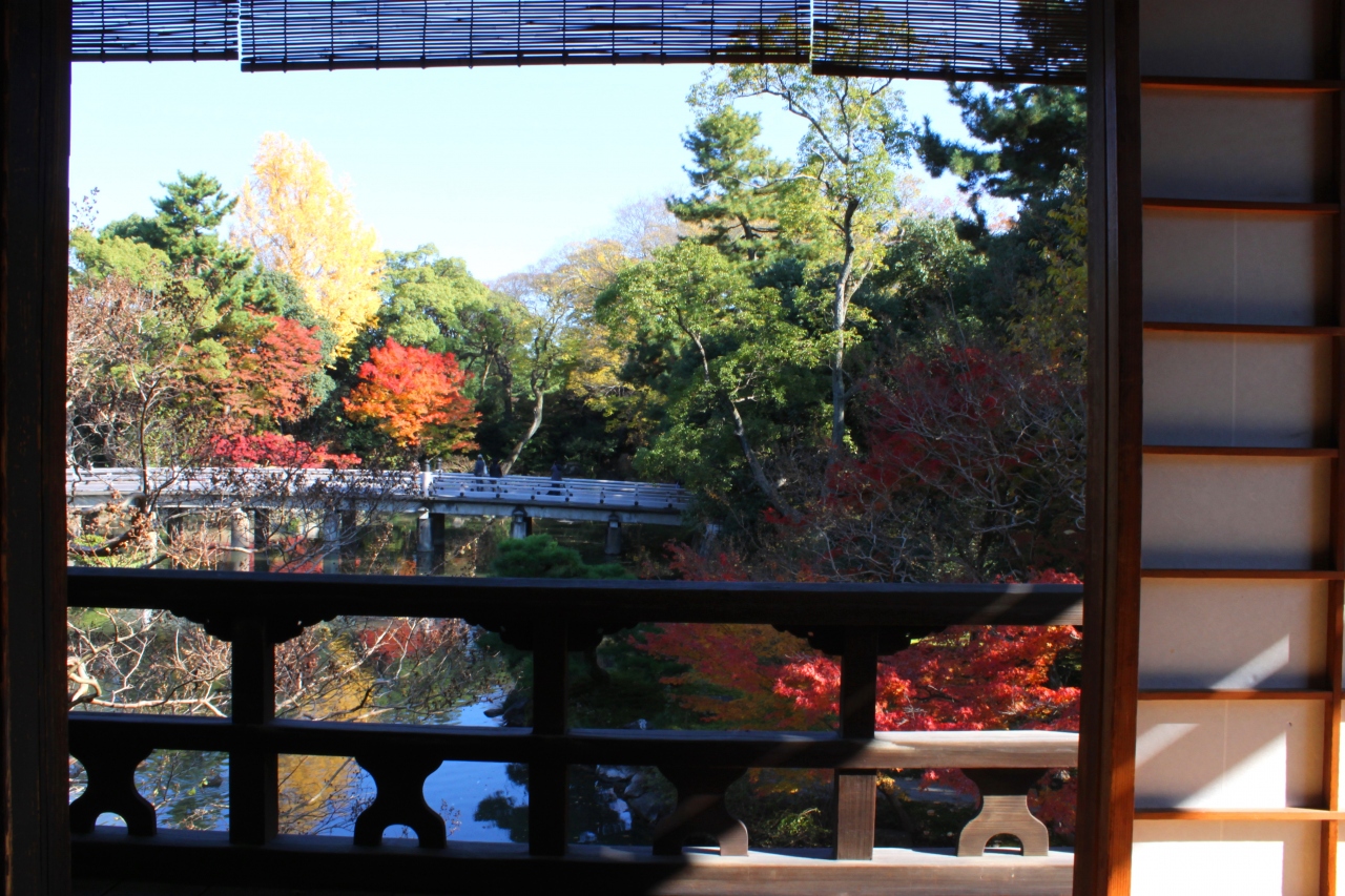 - 庭園散歩ならそこそこ、紅葉ライトアップの水鏡は必見!