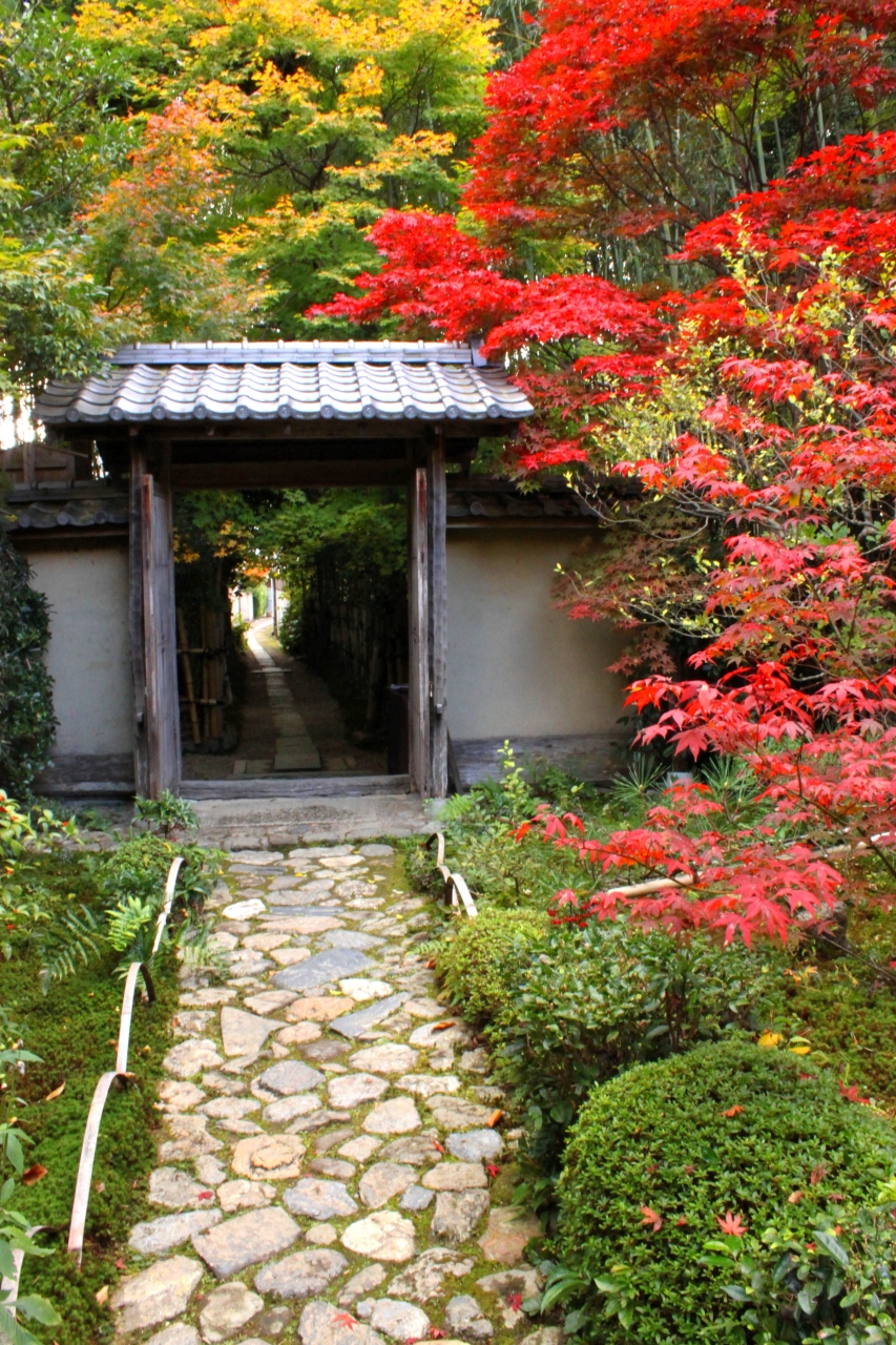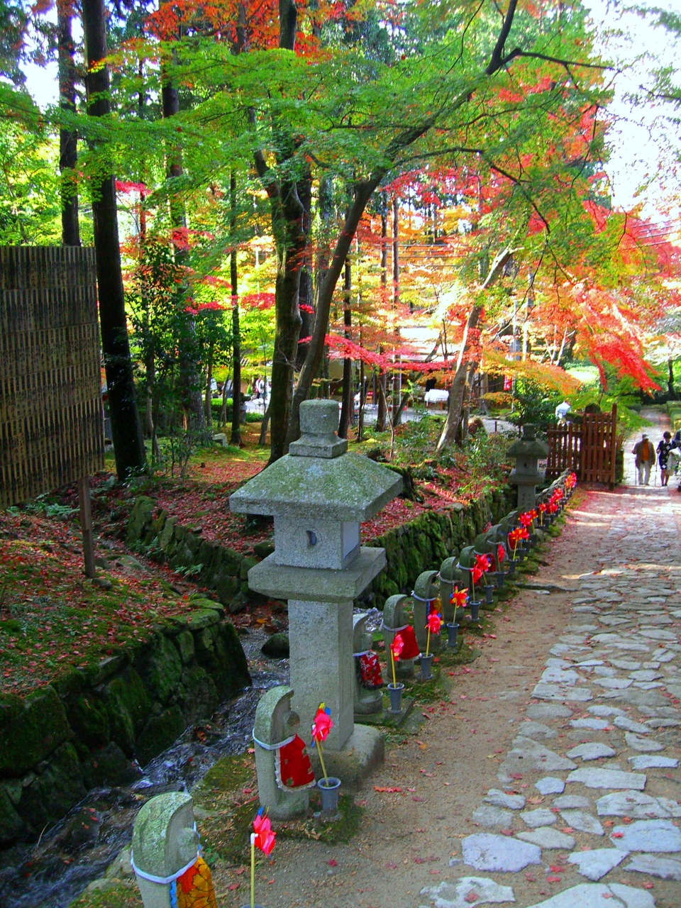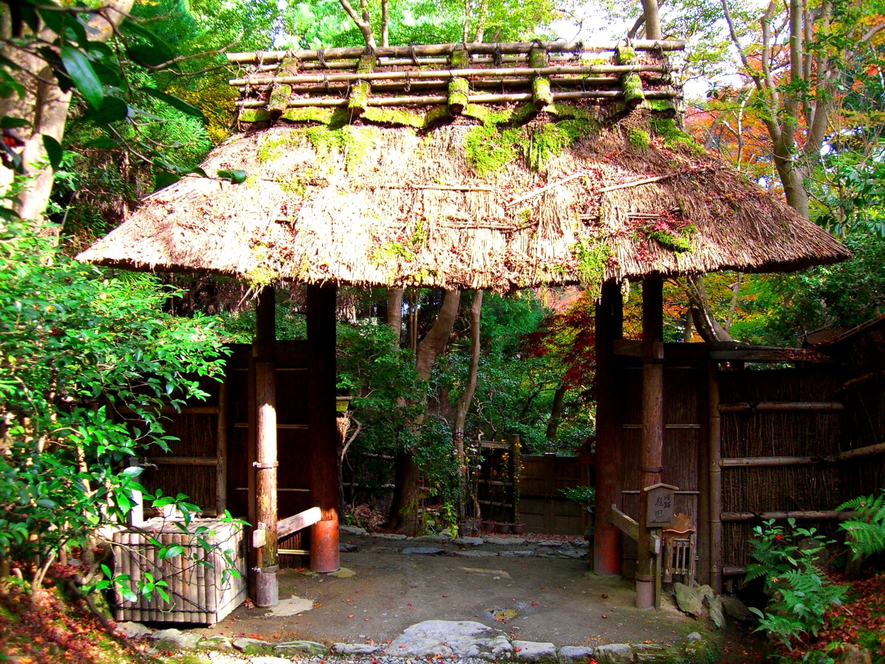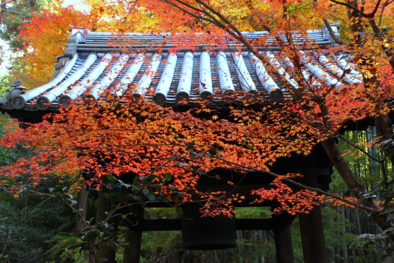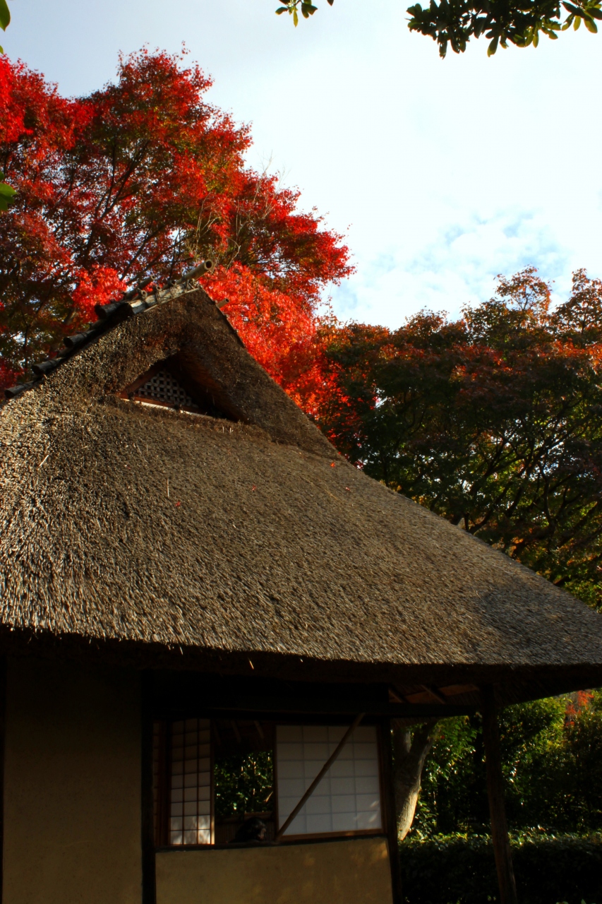 落柿舎の茅葺屋根には、柿の実が似合うなぁと思いつつ歩いたものです。- 旅行時期