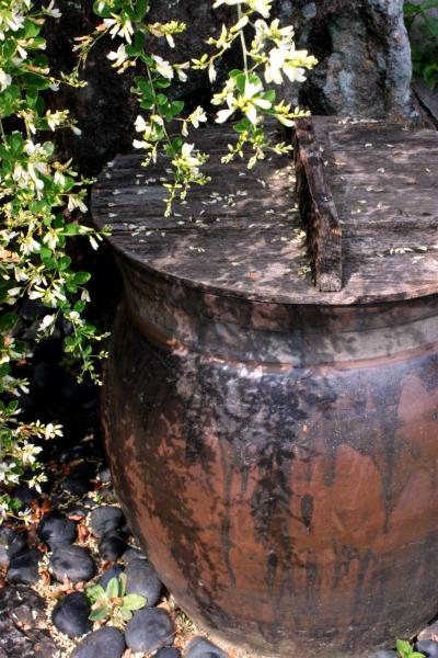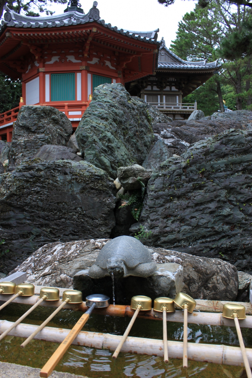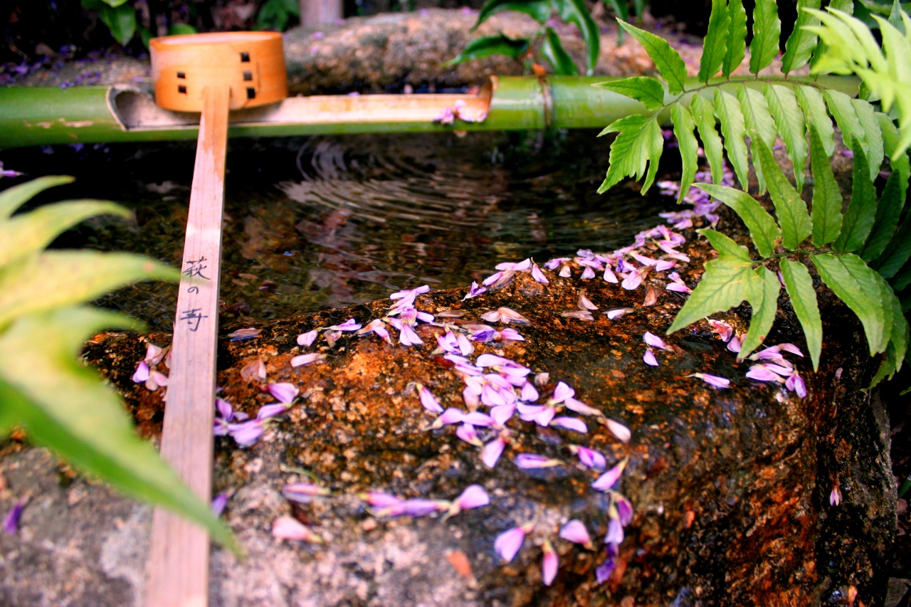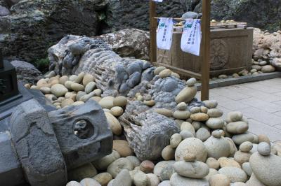 汐の満干手水鉢…潮の満ち引きで水が増減する岩のくぼみ。