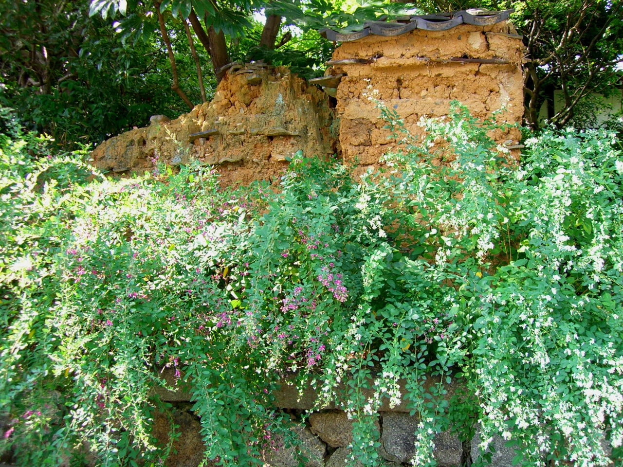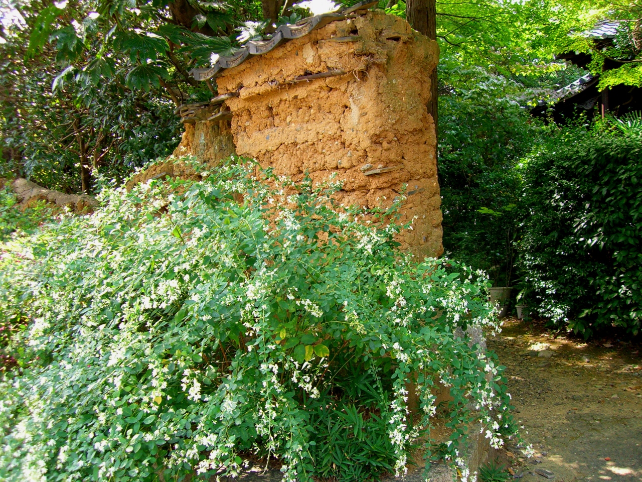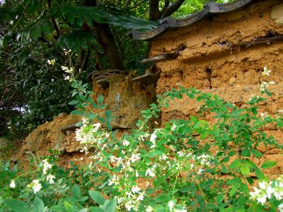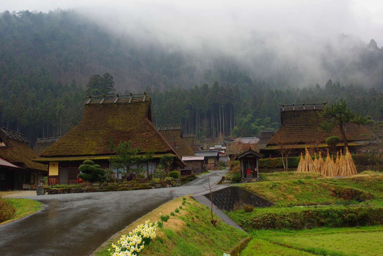 集落の中にも茅葺屋根の茶店がありますよ。- 旅行時期