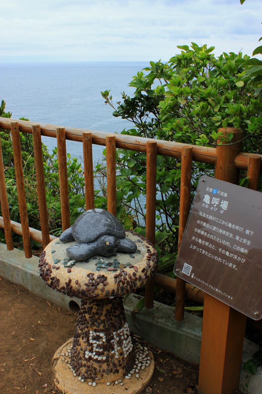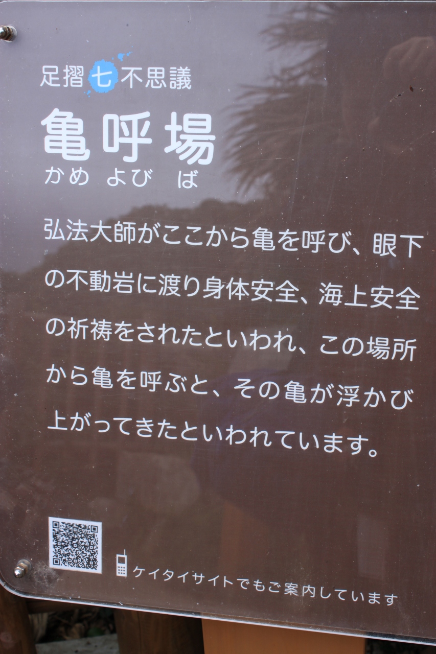亀呼場…弘法大師が前にある礁に波切不動を刻むため、亀の背中に乗って渡っていた。