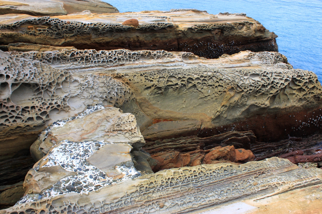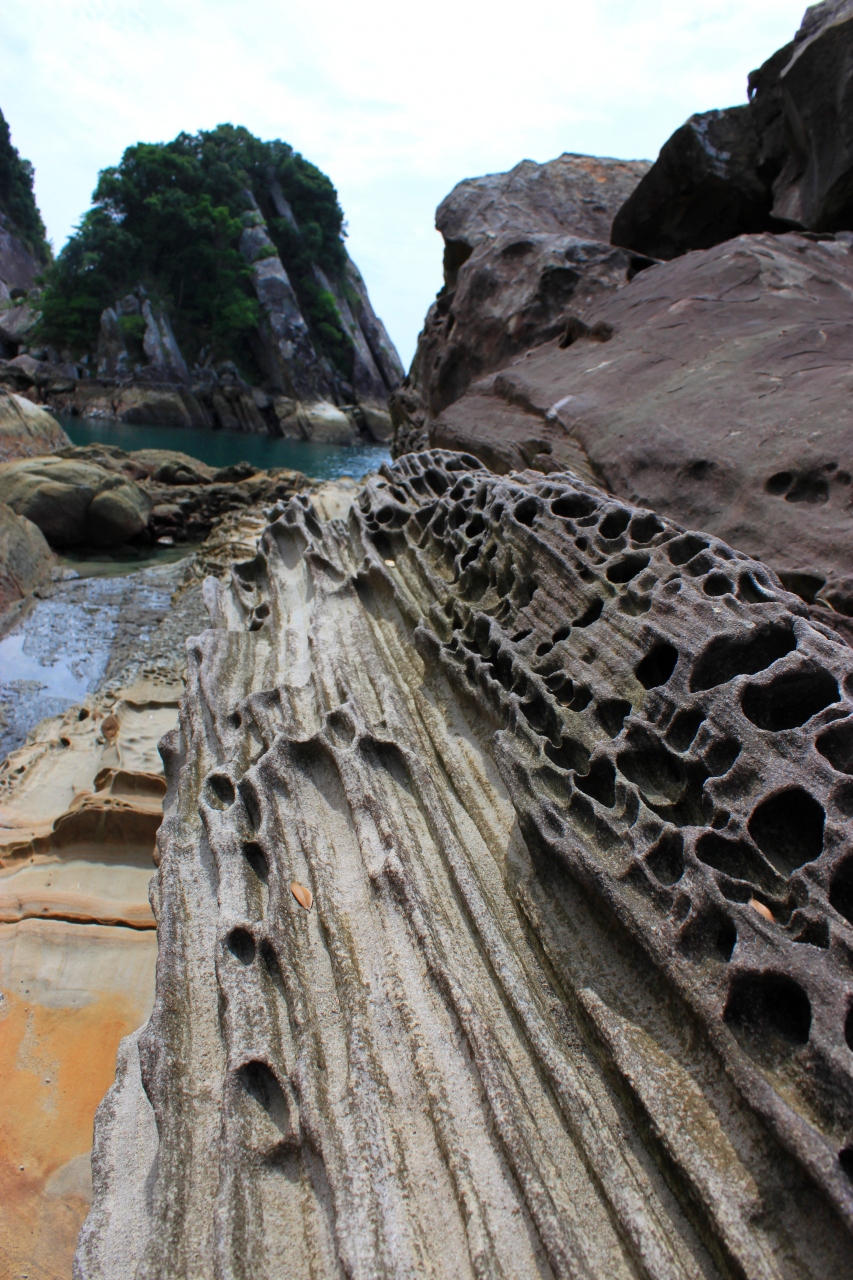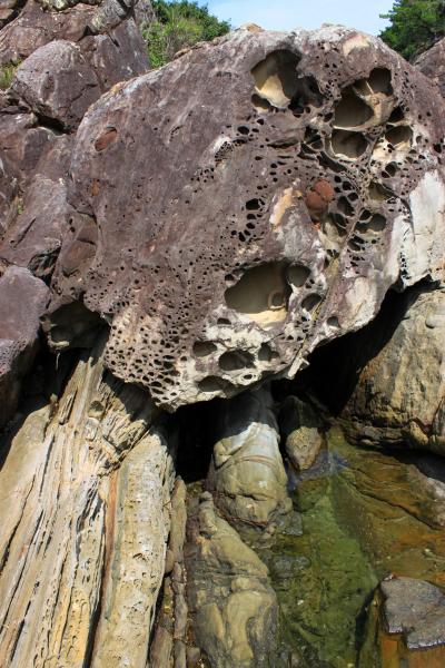 見残し海岸の蜂の巣状の景観は珍しいと思います。