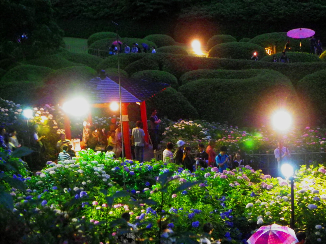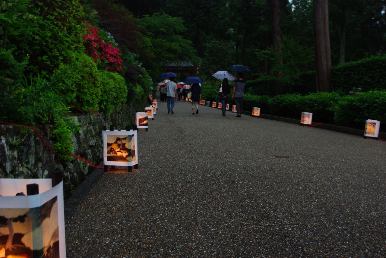 入口も閉じられて、結構多くの人が雨の中ライトアップの受付を待っていました。