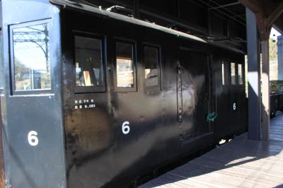 駅舎を出て左に真っ黒なトロッコ列車が展示されています。- 旅行時期