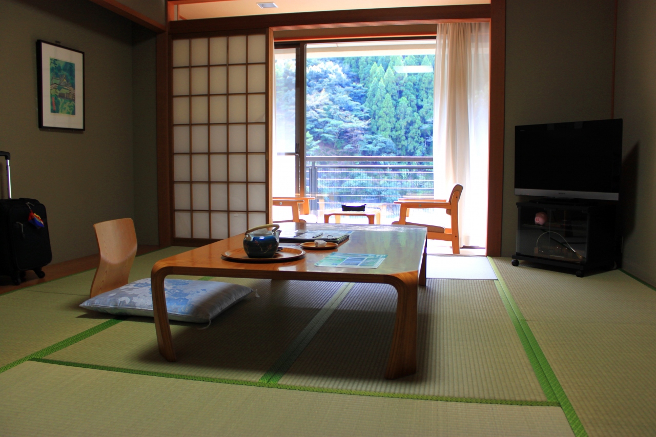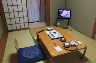 一人旅ですが広い8畳和室は二間続きで青畳の良い香りがしました。