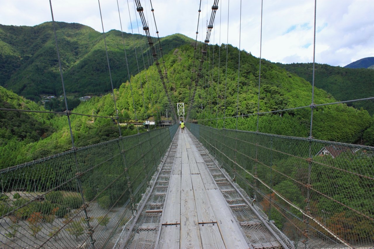 渡り始めると思った以上に長い吊り橋は中ほどではよく揺れます。