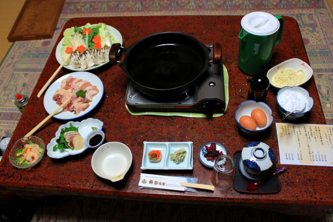 夕食はボリュームたっぷり~奈良のブランド大和肉鶏のすきやき
