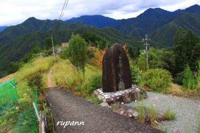 石碑のところで林道を下りかけると