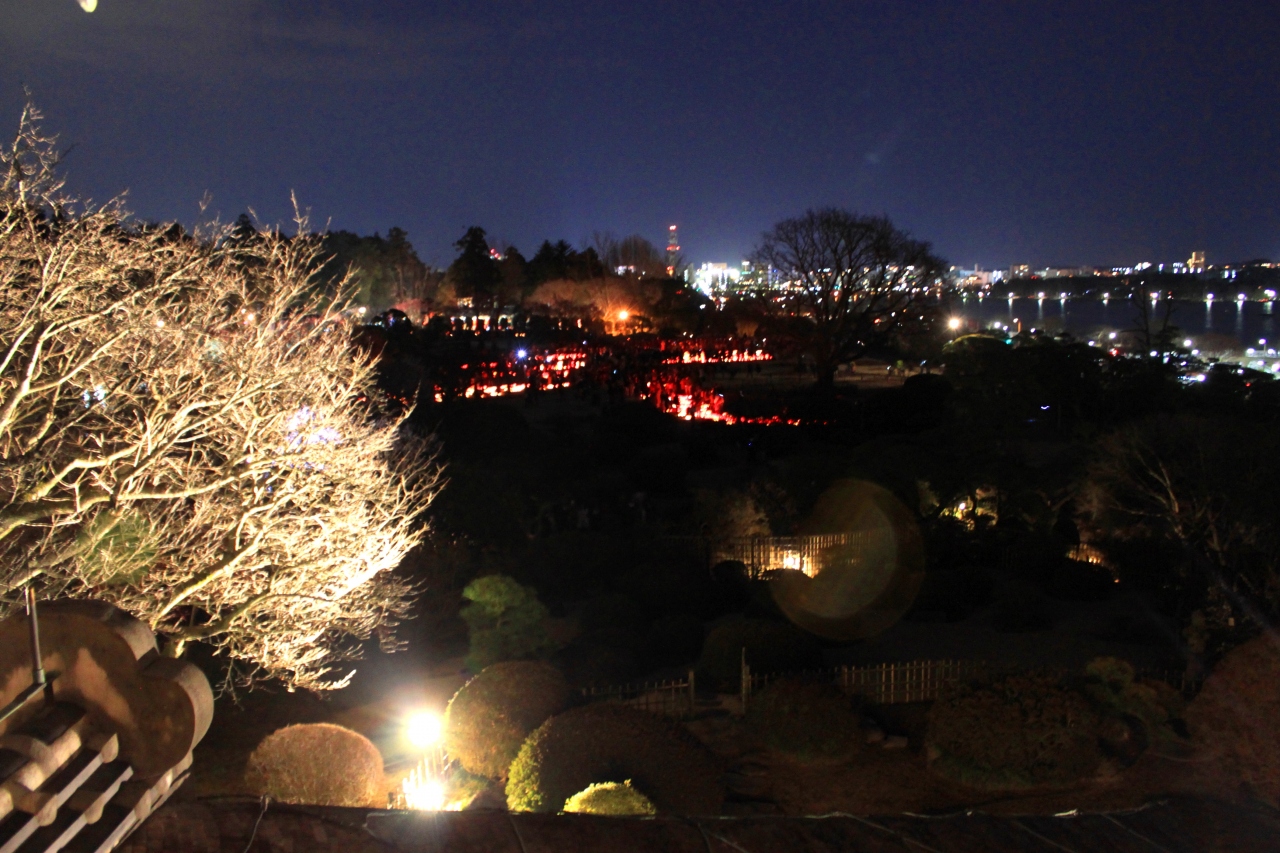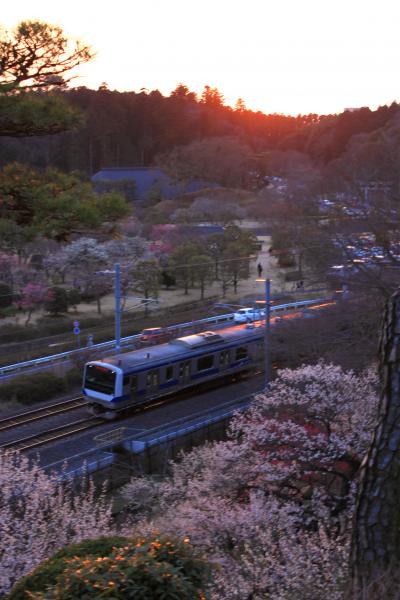 青春18切符で約12時間半、列車に揺られて夜梅まつり目当てで偕楽園へ出かけました。