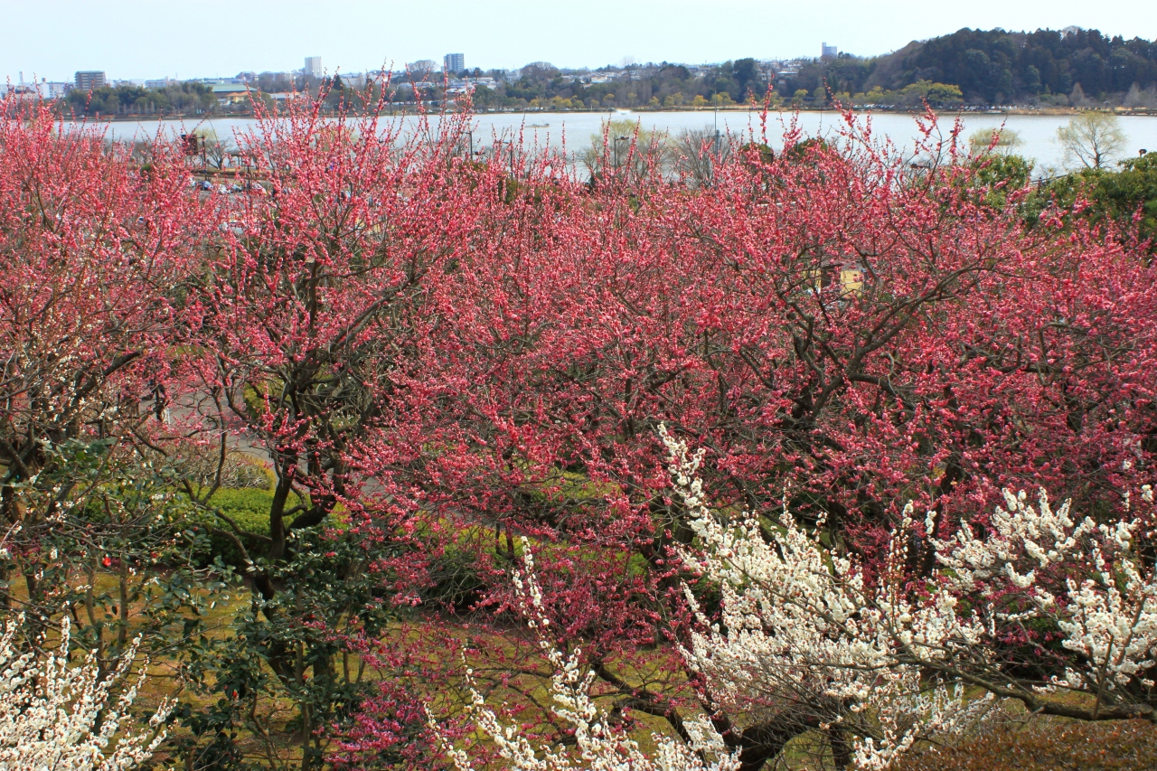 - 偕楽園の梅越しの千波湖は絶景です。