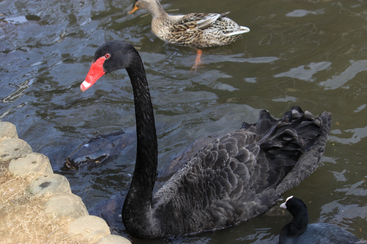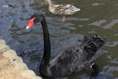千波湖ではボート乗り場があり、鴨や黒鳥が人慣れしてるようで