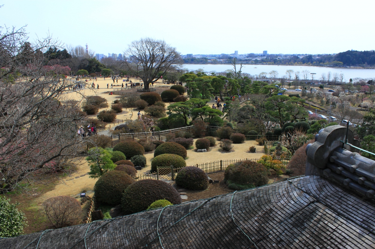 上階から眺める梅林や千波湖はとてもいい眺めです。