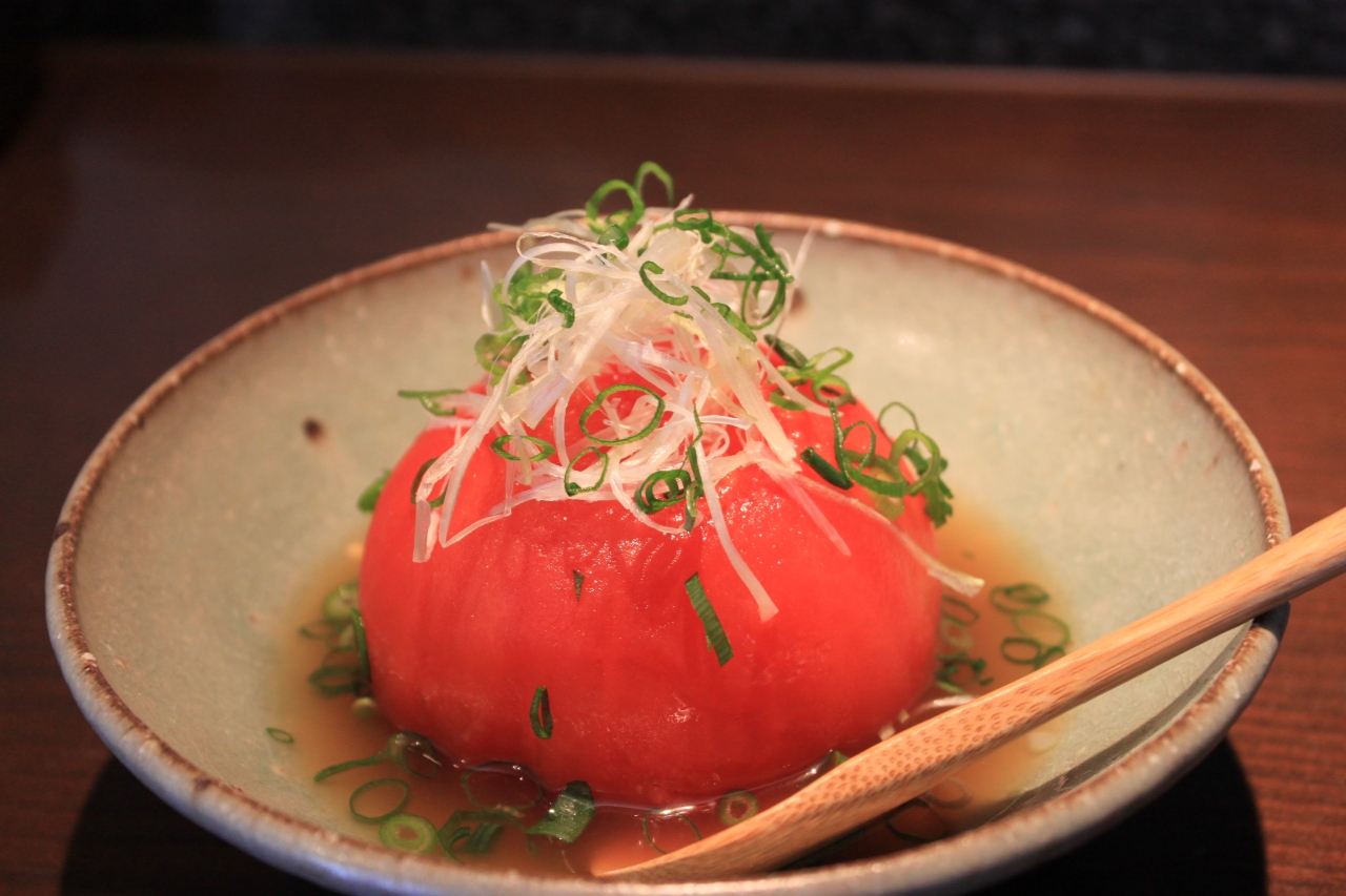 外側はお出しのお味がしみて美味と思ったが中は固いままのトマト...