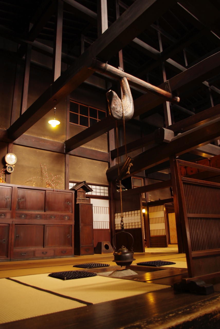 主家〈おもや〉は、切妻造り段違い二階建て、一部吹き抜けの総桧〈ひのき〉造り。