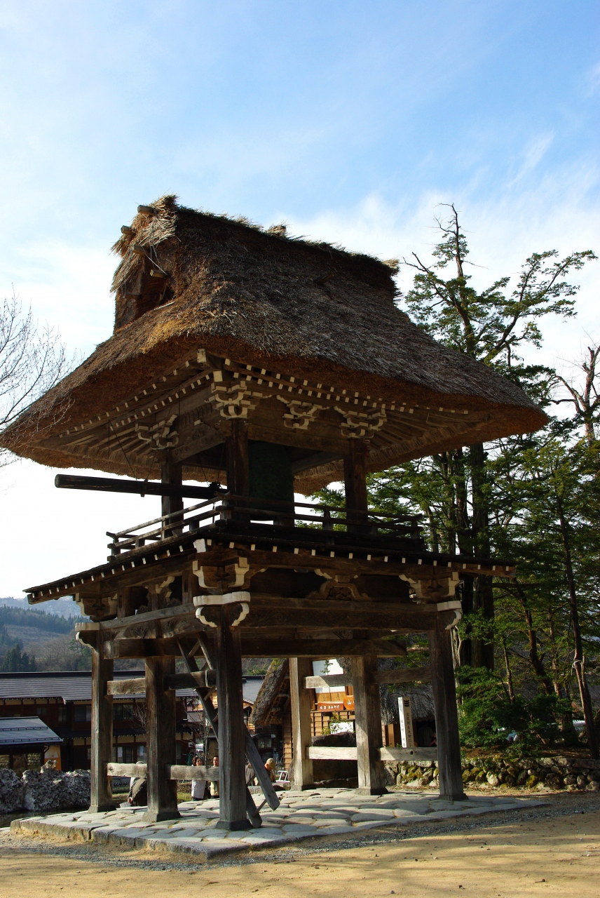 集落内の真宗大谷派の寺院。本堂、庫裏、鐘楼と合掌造りのままなのは他に類を見ない。