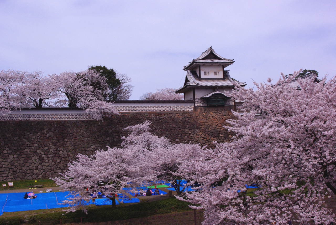 翌日通りがかった金沢城周辺は、ブルーシートの花が咲きまくりでしたね(笑)- 旅行時期