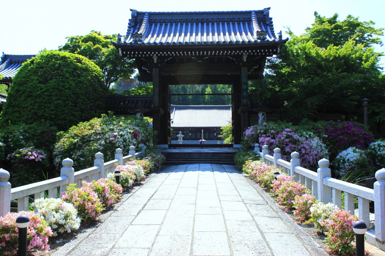 雪月花三名園の一つ「雪の庭」をはじめ、桜やツツジが美しい寺院です。