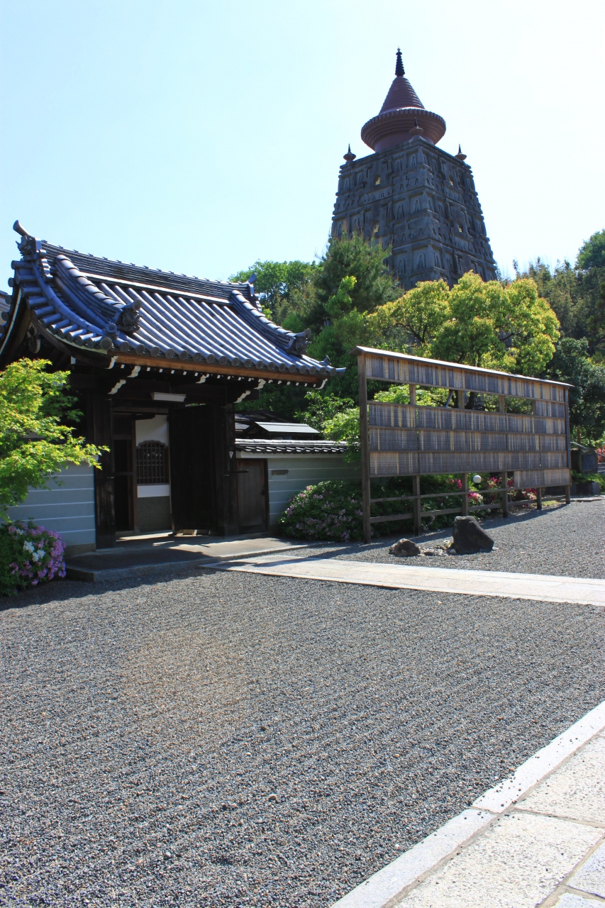 ツツジは見頃過ぎでしたが、広く大きな仏舎利塔が印象的です。