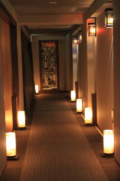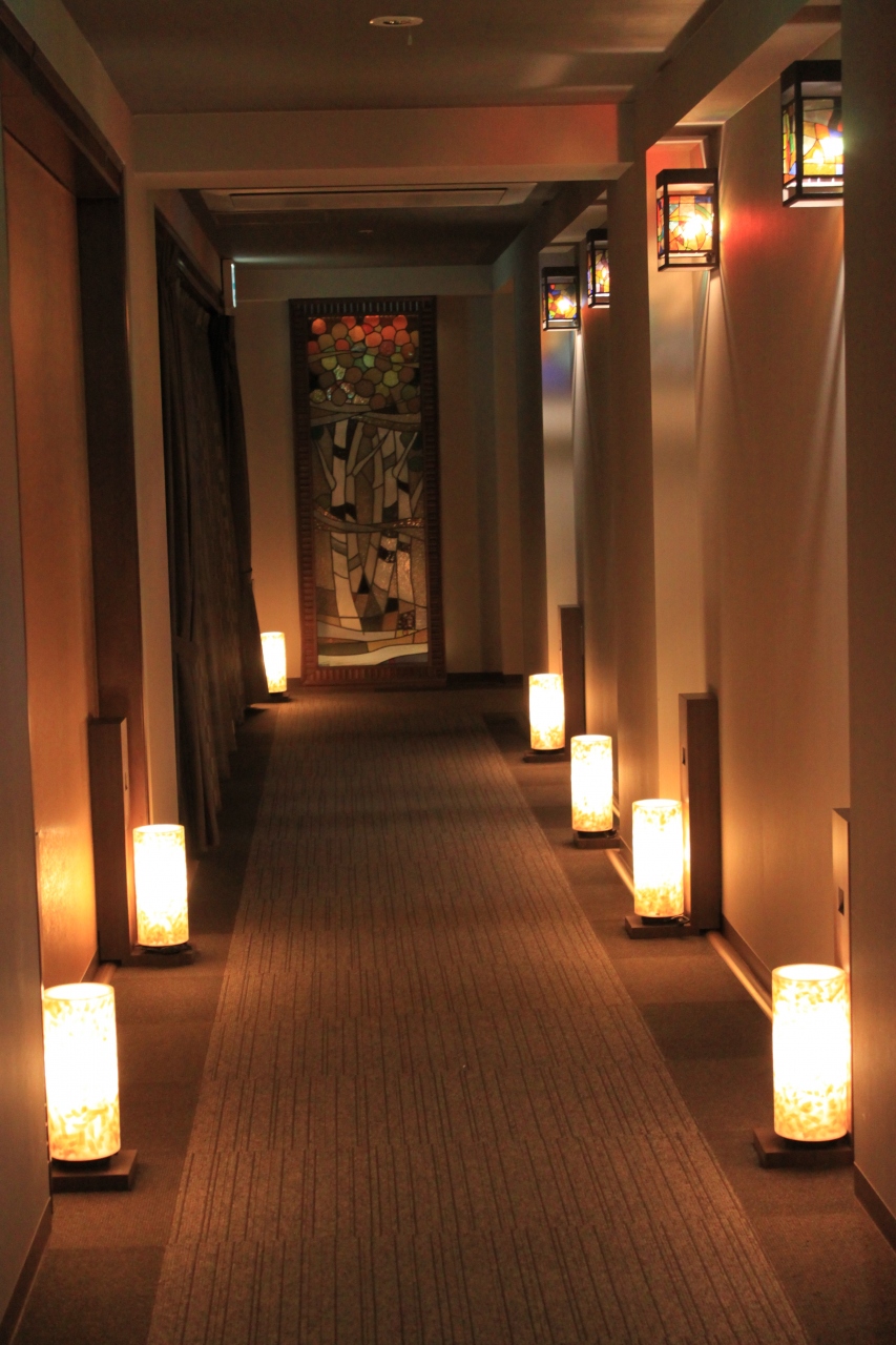 大浴場は広く、ステンドガラスの柔らかな灯りがいいですね。