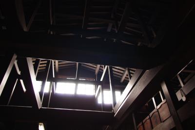 梁〈はり〉と束柱〈つかばしら〉の木組みの力強い構成