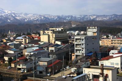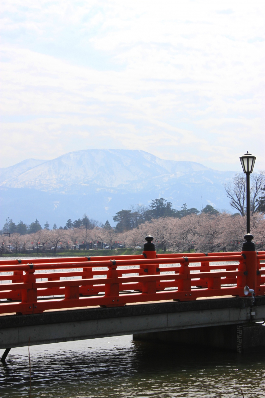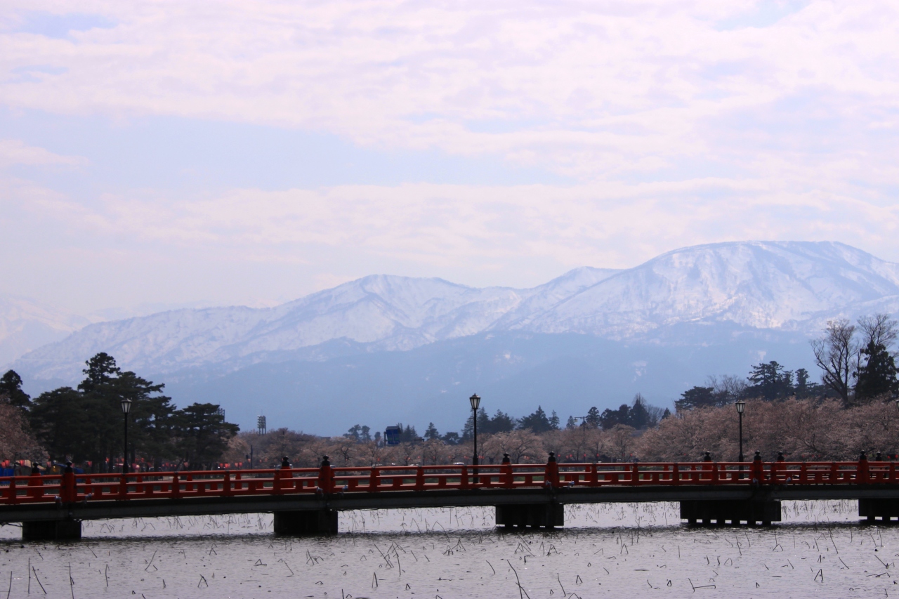 昼間の西堀橋あたりからの残雪の山並みと桜並木も素晴らしい景観ですね。- 旅行時期