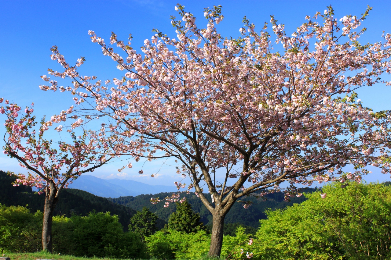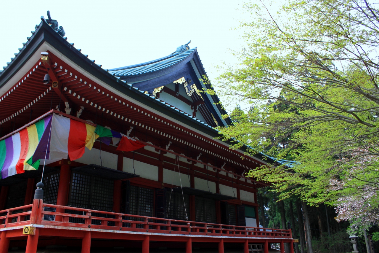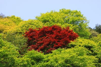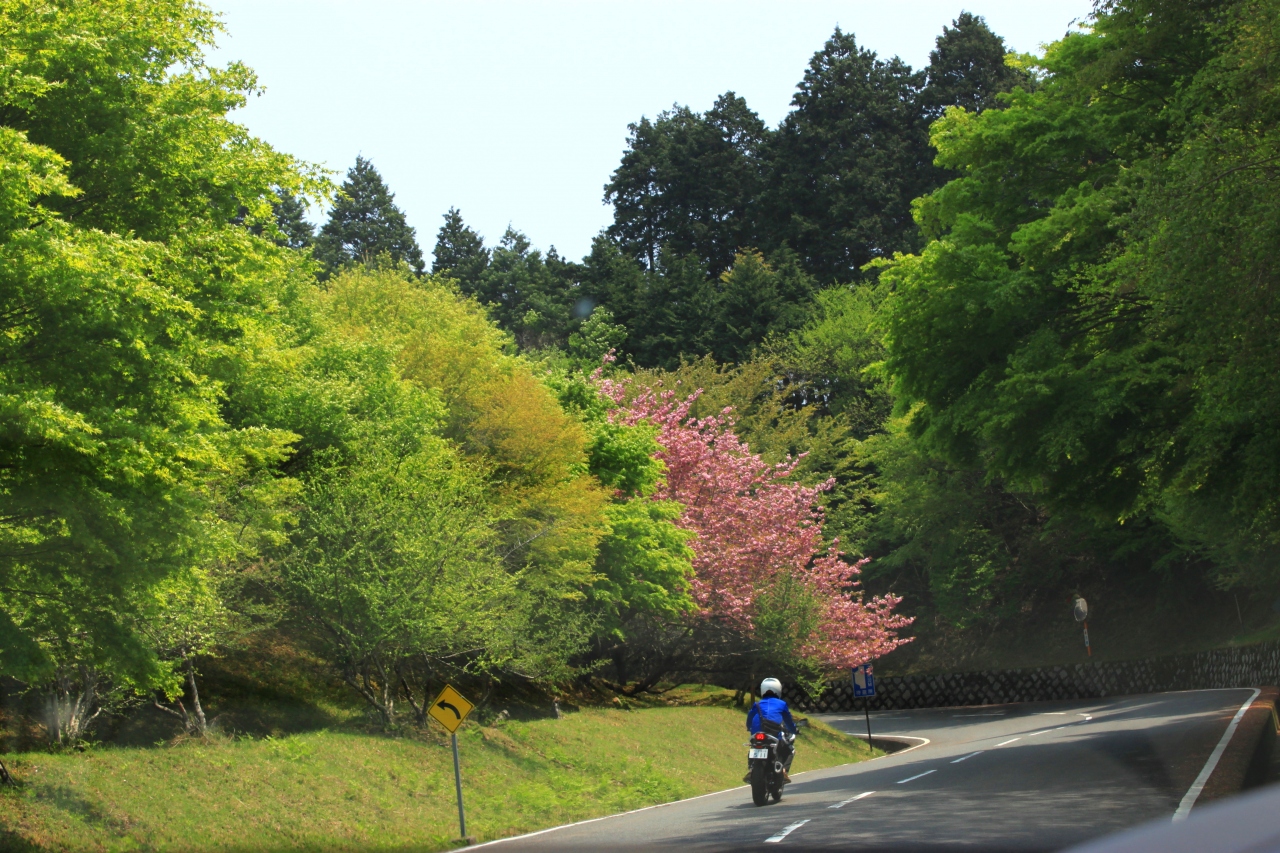 青もみじと山桜、八重桜がまだ残っていていいコースです。