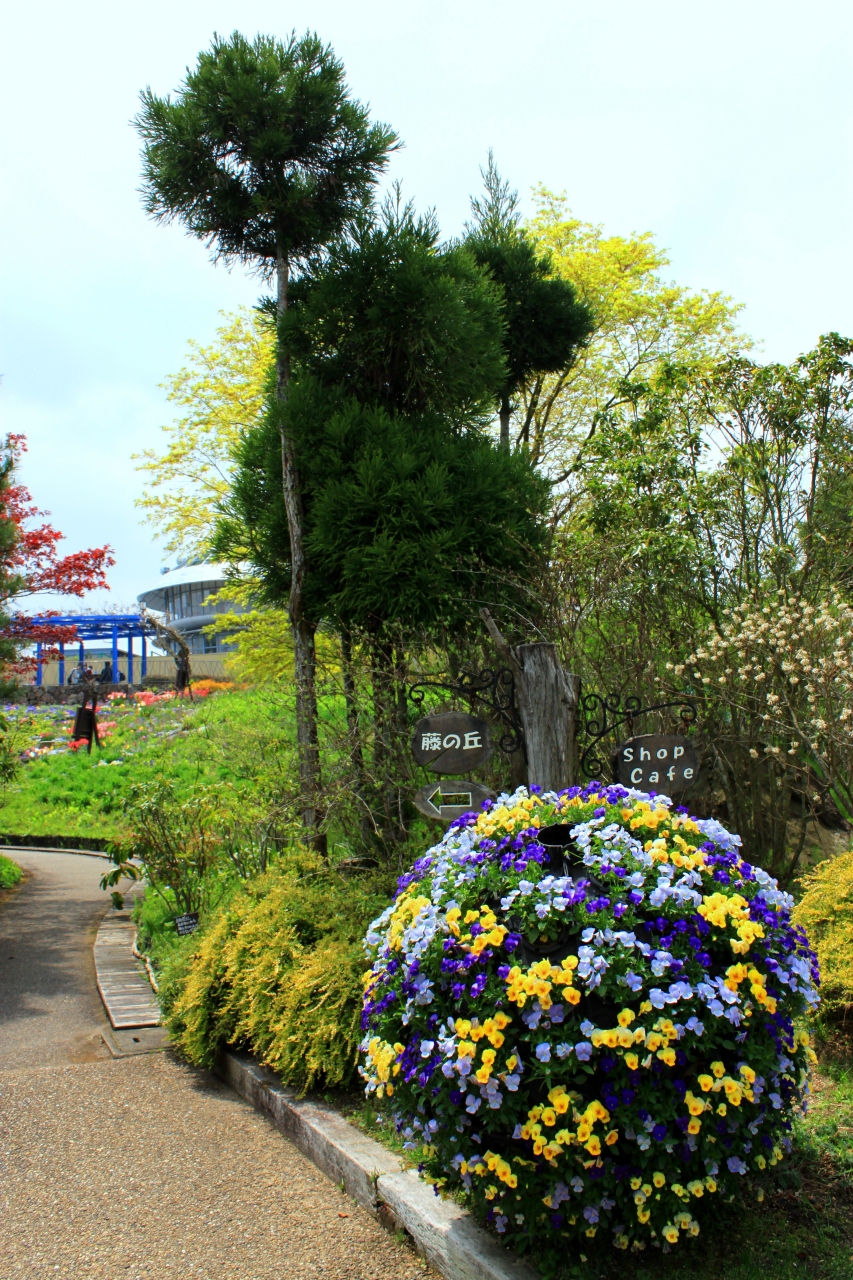 陶板画を囲むように小気味よく色とりどりの花々が配されています。