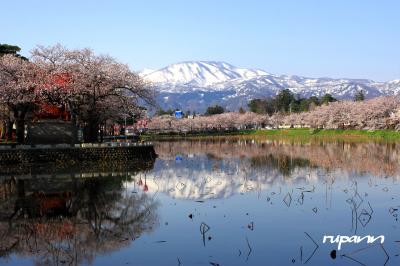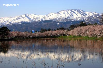 日本三大夜桜も広い公園の桜並木と残雪の山並みも満喫出来ました~♪