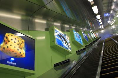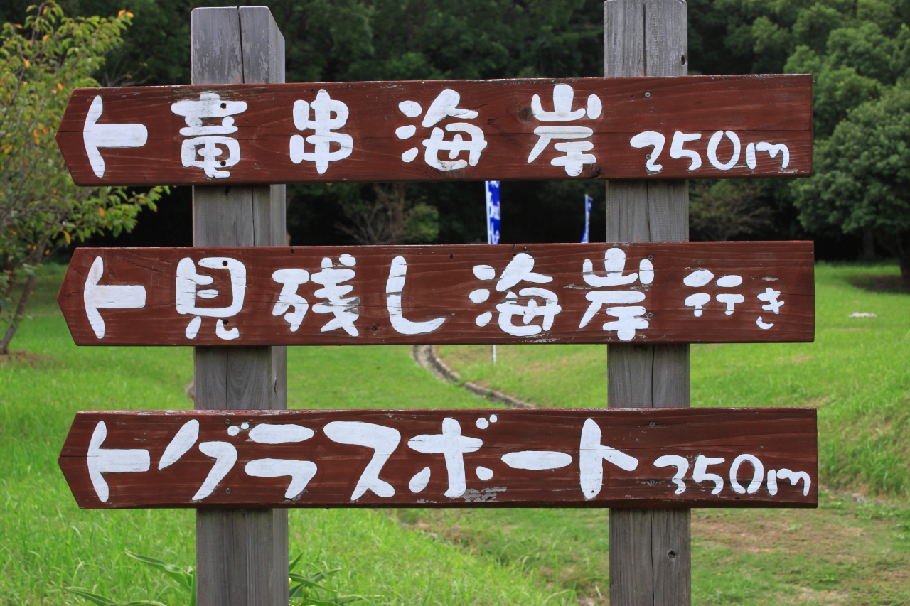 海洋館手前のバス停で降りるとすぐにチケット売り場の看板が見えます。