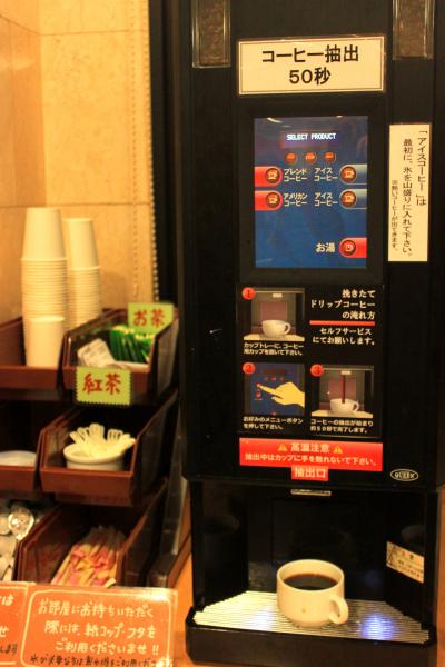 24時間利用OKの飲み物、珈琲はカップで部屋へ持ち込みOKなのがありがたい♪