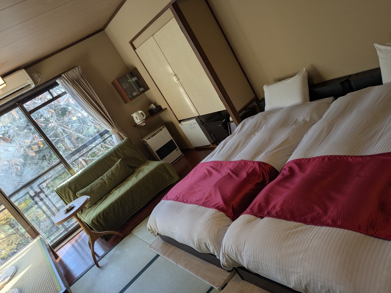 周囲には何もありませんが、部屋は広く、のんびり旅館の時間を楽しみたい人向けだと思います。