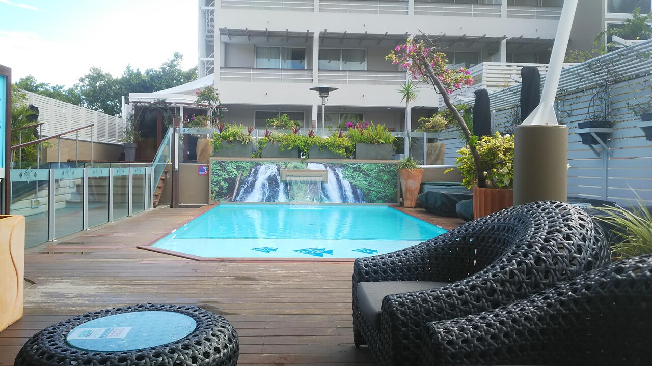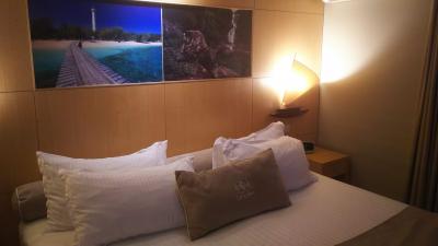 オーシャンビューではありませんが、アンスバタビーチが徒歩すぐなので、海水浴やガイドブックに載っているようなレストランには困らずに楽しめるエリアにあります。ホテルの並びにはフランスコスメが売っているドラッグストア、小さめのスーパー、5時(5時半だったかも)にオープンするパン屋があります。プールやジムもあるので、ホテルライフもそれなりに楽しめますよ。