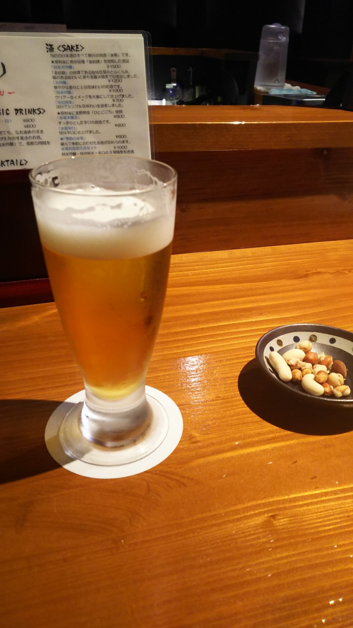 大湯の近くにあるバーで、野沢温泉の地酒 水尾がお勧めです(私はビールを飲みましたが)。キリンビールはチャージ込みで600円でした。ホテル併設のバーでトイレも綺麗なので、トイレ休憩にも使えると思います。