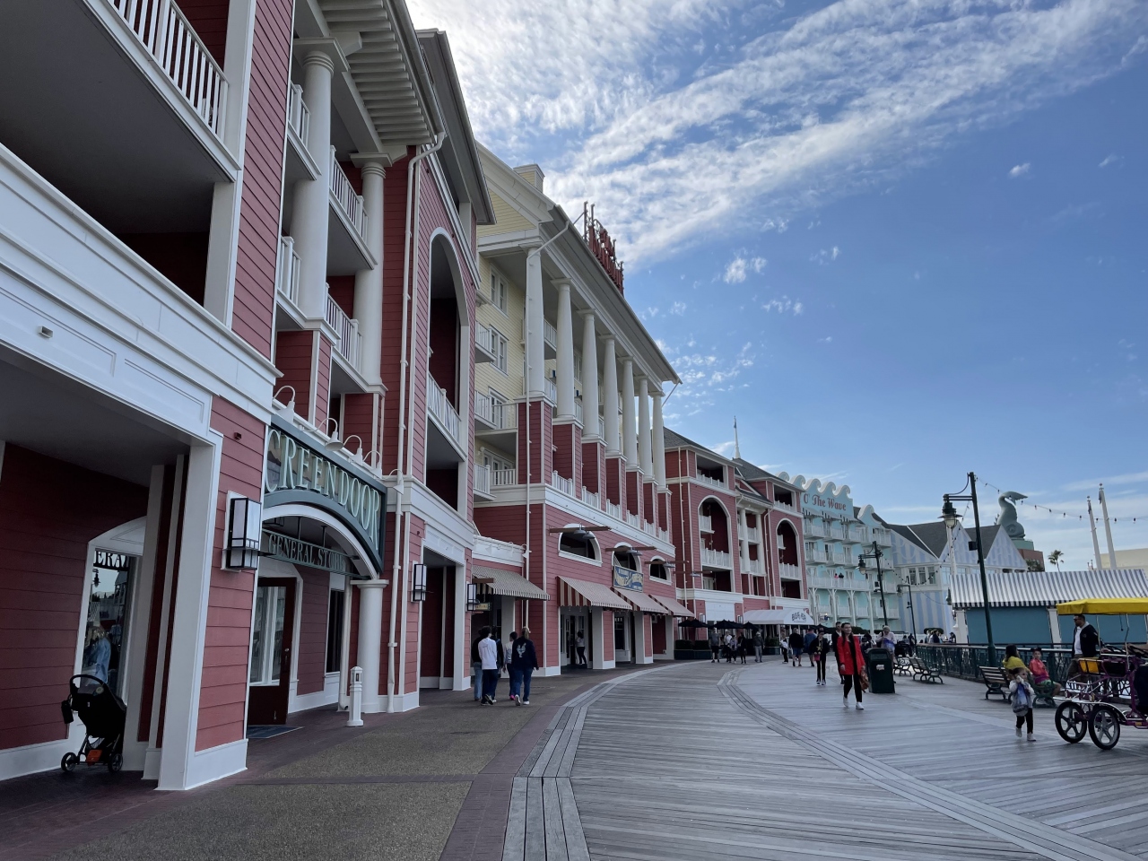 エプコットとハリウッドスタジオの間あたり、大きな湖の周りに、3つのホテルと、レストランやベーカリなどが並んでいるボードウォーク。昔のアメリカ東海岸をイメージしたリゾートで、正に映画に出てきそうな雰囲気です。